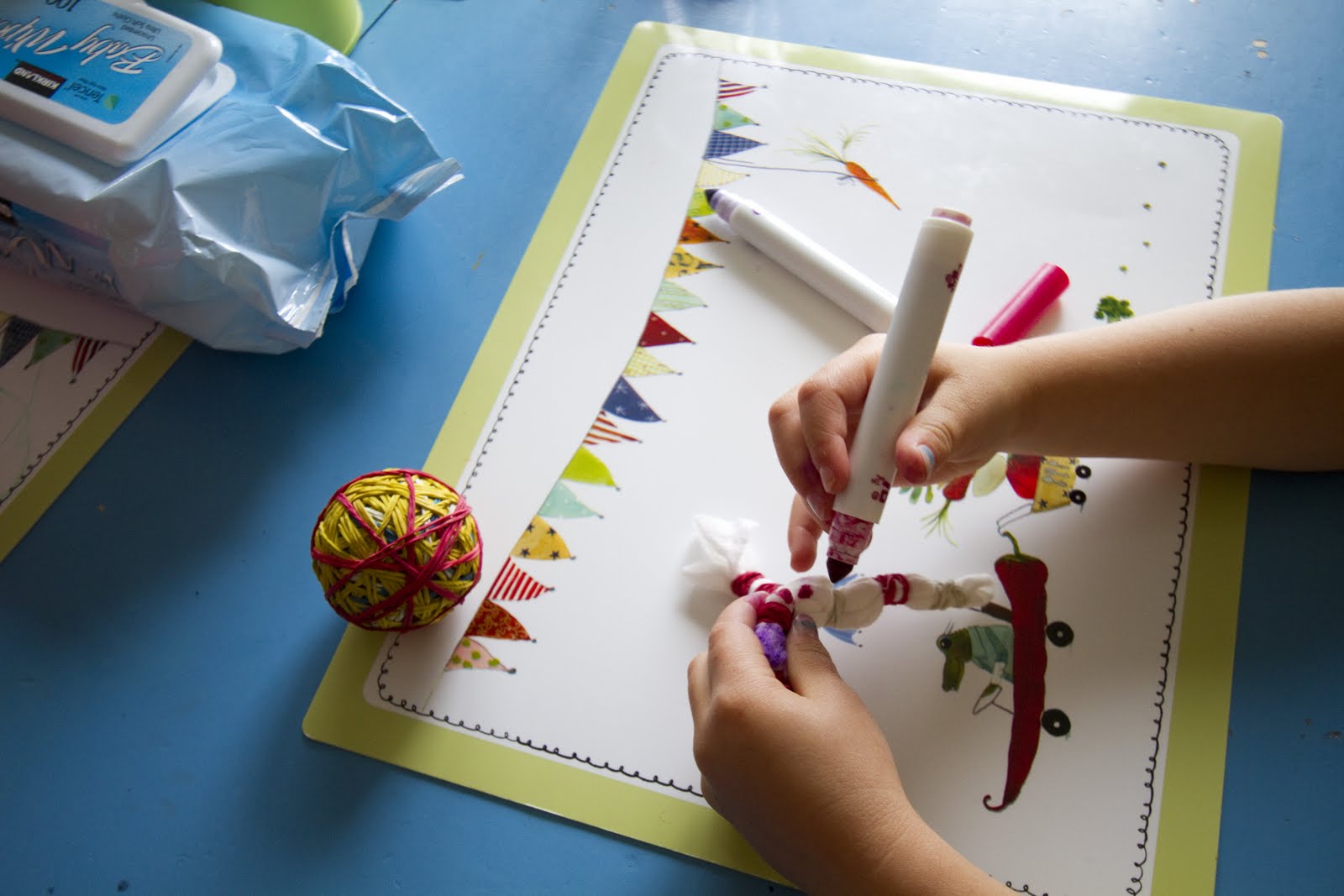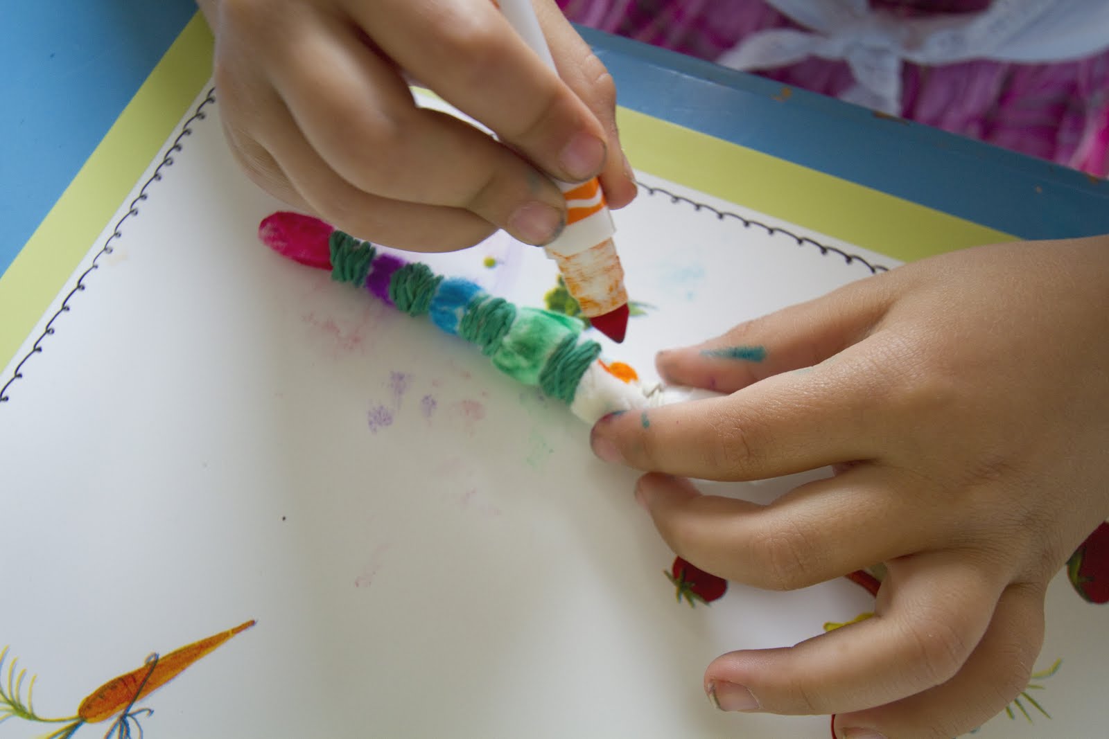 Once the wipe is all wrapped up, let your child colour all the white spaces.