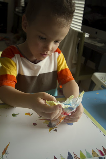 This activity was so simple and fun, and was a great way to spend a morning. The rain and grey were forgotten as we brought our own little dash of colour into the kitchen ourselves! (And onto our fingers!)