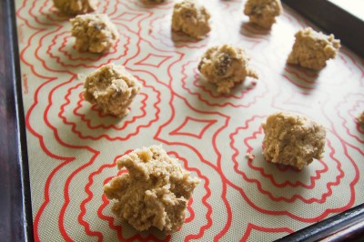 Now you are ready to drop them onto an un-greased pan, parchment, or silpat. I make them quite small…maybe 1 inch balls.