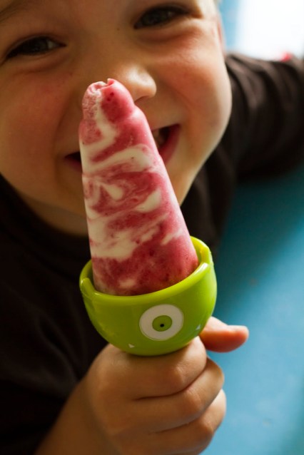 So I guess what I’m trying to say is, get your little luvies involved and whip up a batch of pops together…it’s simple and healthful and yummy. And you can try all different kinds of combinations…no need to stick with strawberries and cream! In fact, tonight we are making “rootbeer float pops!” If it sounds yummy to you, and it will freeze, then try it!!