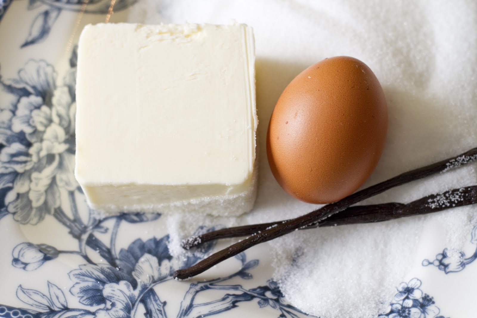 Cream together 1/2 cup of softened butter, with 3/4 cup white sugar…then add your egg and the seeds from 1 vanilla bean. (If you don’t have beans in your pantry, use 1/2 tsp vanilla extract)