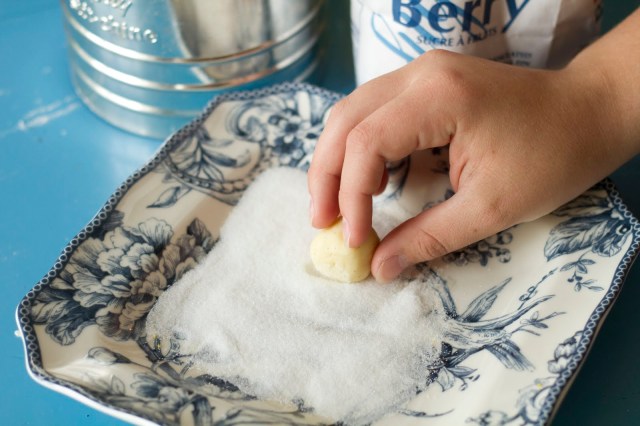 Make 1 inch dough balls, roll them in berry sugar, place on parchment-covered baking sheet and bake.