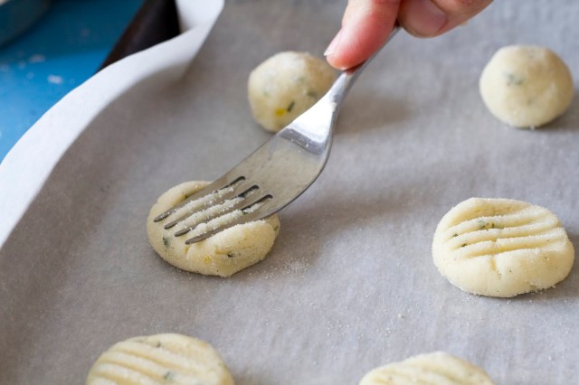Press them down with a fork…and bake at 375° for 8-10 min.