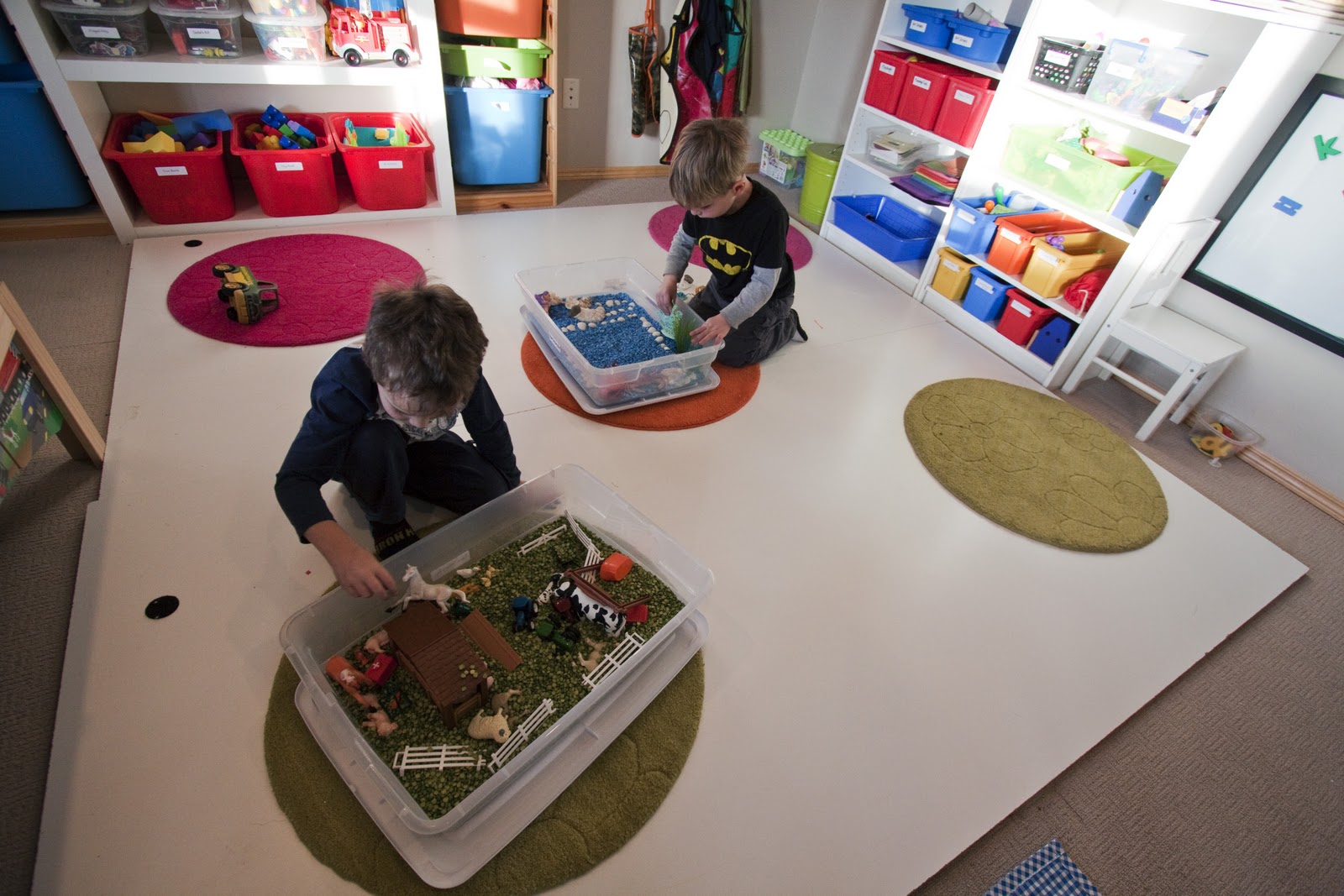 What wonderful sensory play bins! And even more so, I am oooh’ing and ahhh’ing at your playroom. It’s so serene and organized. The kids are so lucky!