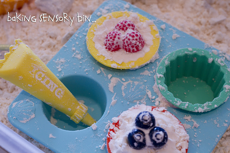 Add all kinds of plastic cooking/baking/kitchen accessories to your bin and then get started!