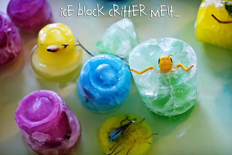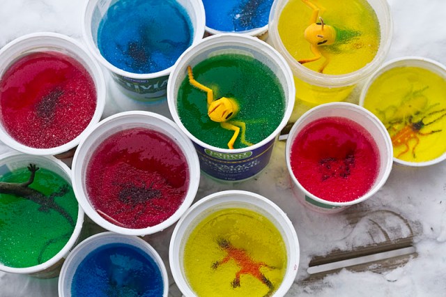 Here is a snake encased in ice…it looks pretty neat. The children will love swirling the melting colors into the water, and watching the critters emerge from the ice.