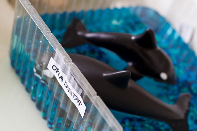 They chose the large cake topper container for the whales, as they need more space!