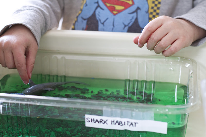 Well, we’ve made it to day four of our Water Week, and we are all a bit wet around here. Today’s activity was probably our favourite one of all. We built our own small world aquarium. We talked about habitats and how all living creatures have a habitat that they thrive in best of all. The ocean animals that we chose to have living in our aquarium were given a habitat that the children thought resembled most “authentic.”