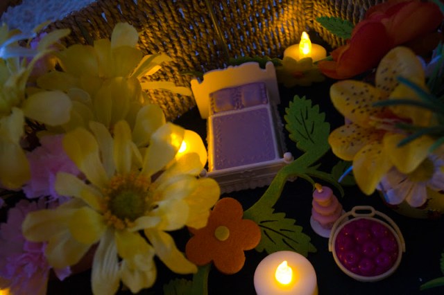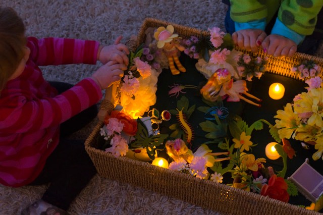 There is a little bed in the corner (we borrowed from our dollhouse) for the fairies to sleep…