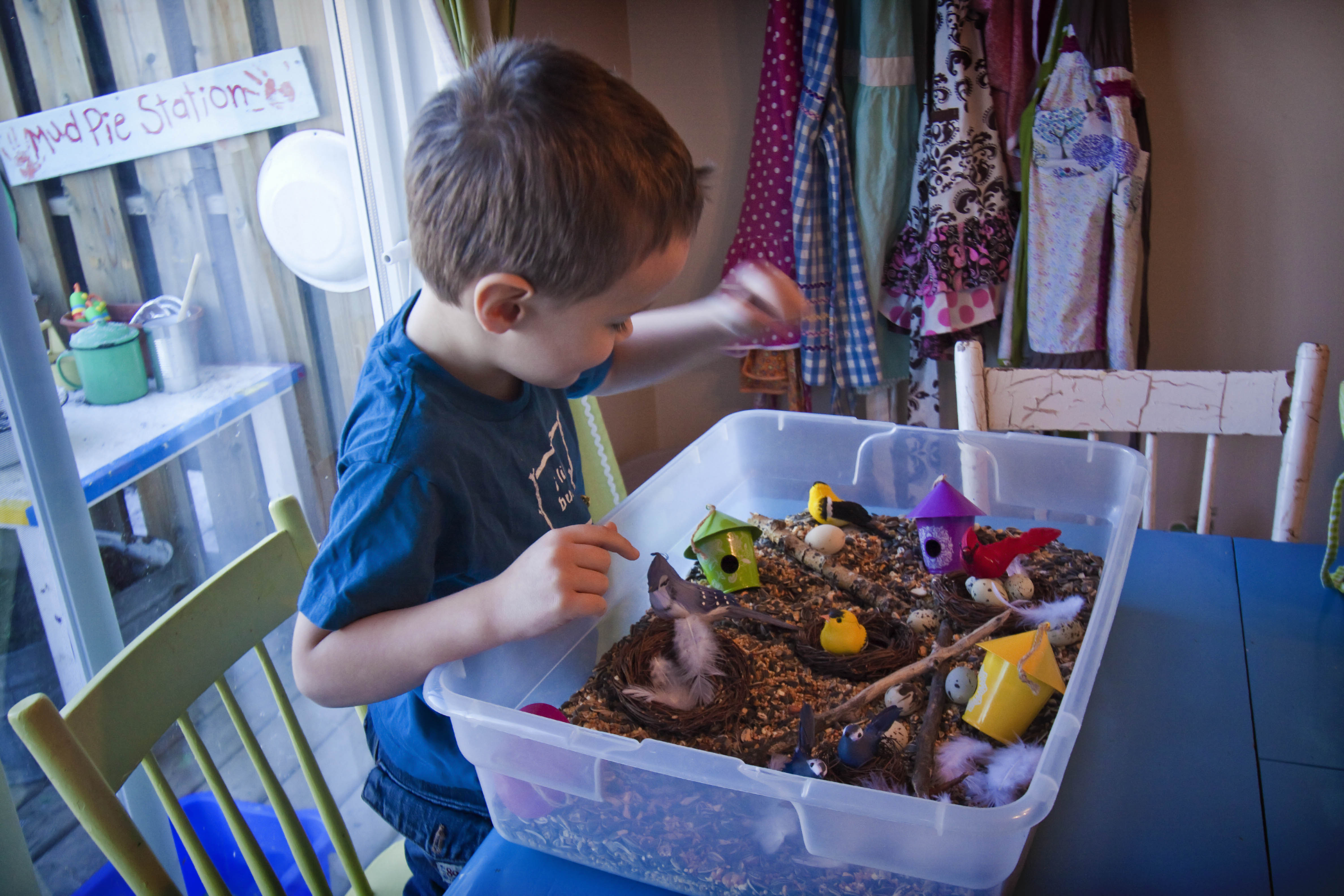And yes, birdseed will spill out onto your table or floor. But so do sandwich crumbs and stubborn peas that won’t stay on their forks. Just remember…it sweeps up. But I would recommend not playing with it on shag carpet! Lol!