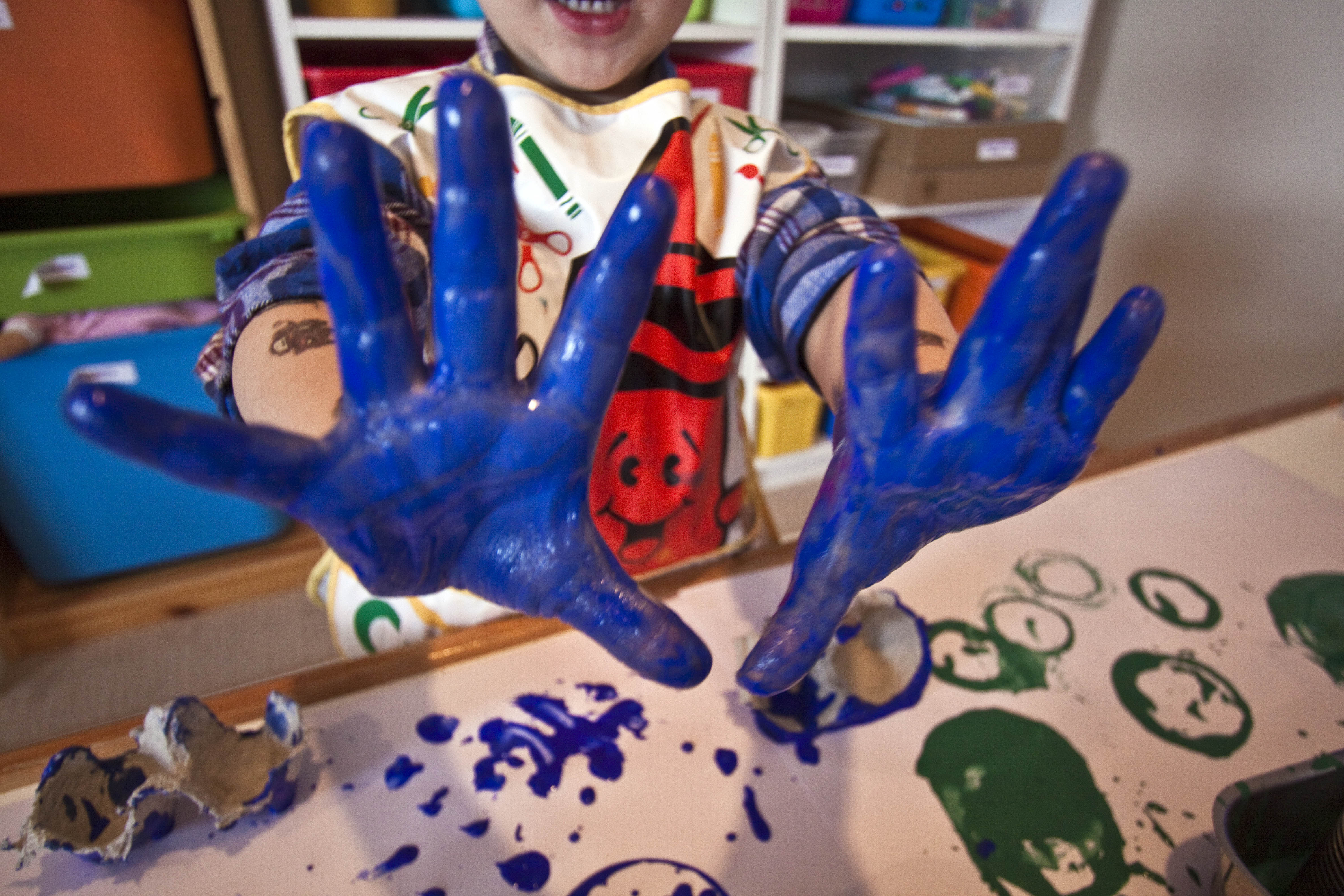 I gave them popsicle sticks to spread the glue, but they decided hands work better!
