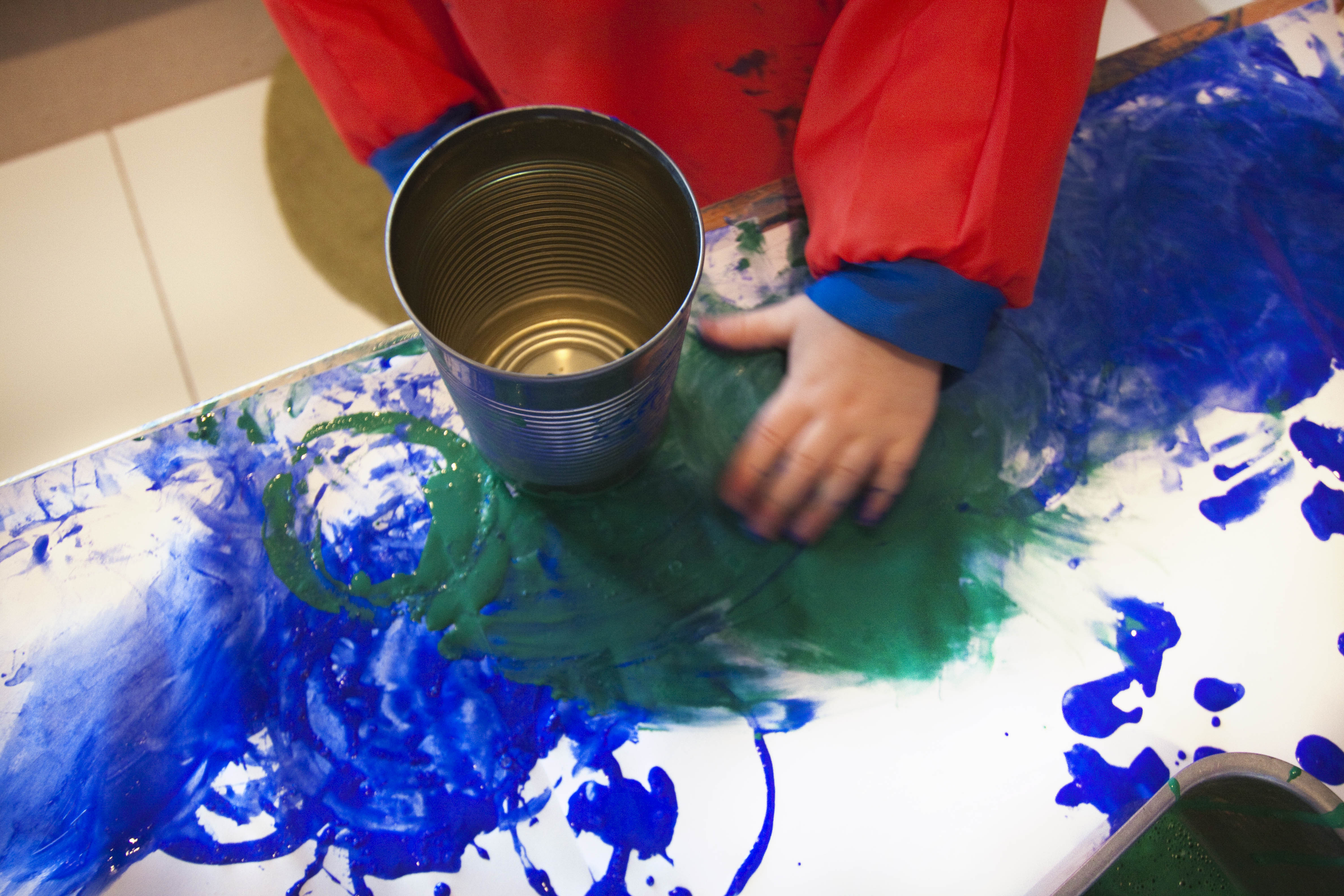 Once the experimenting was out of the way, the real fun began. The toddlers tried filling the yop bottles with paint and poured them out. And then they abandoned the recycling entirely and did what I expect of all the wee ones at my house when the paint comes out…they used their hands!