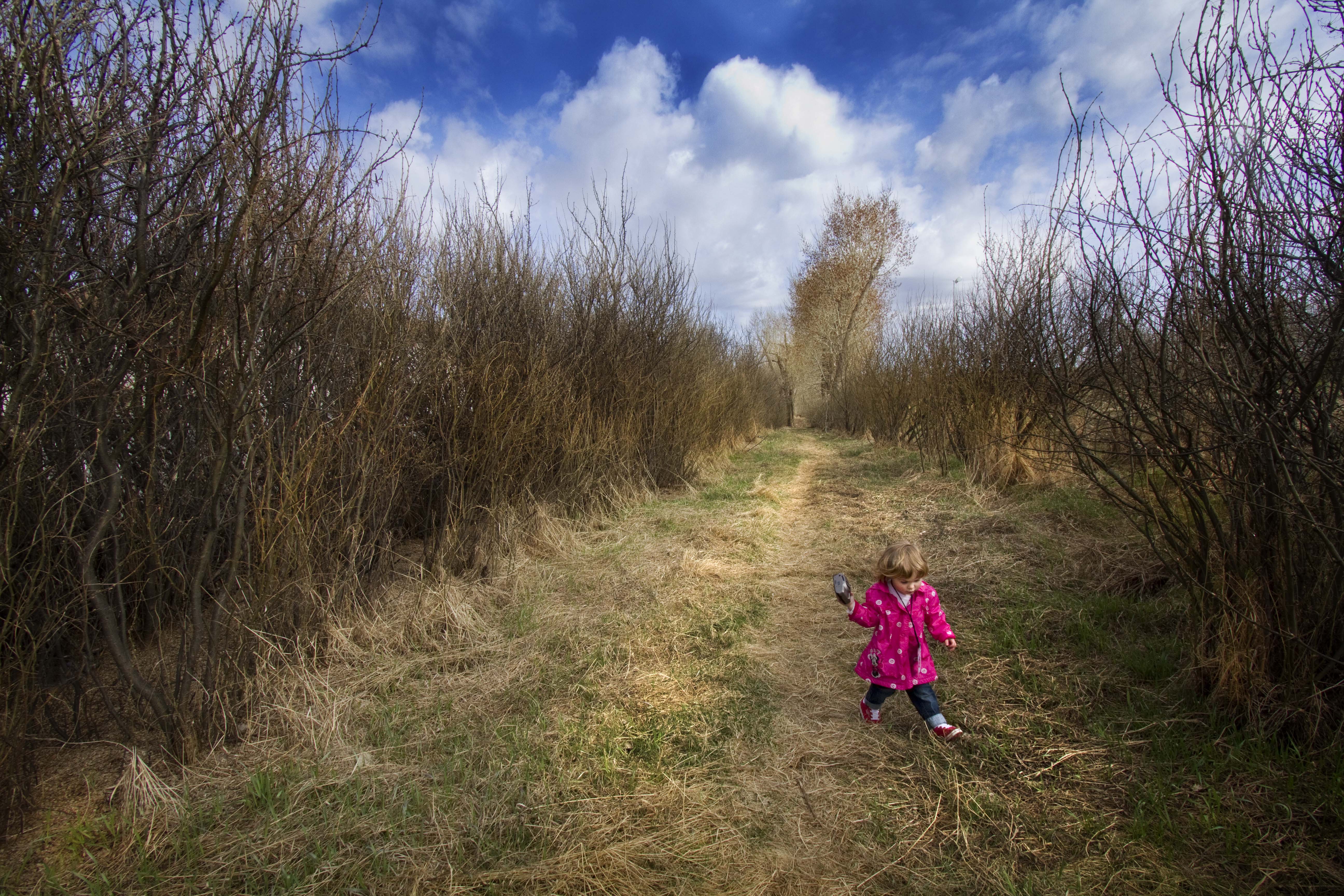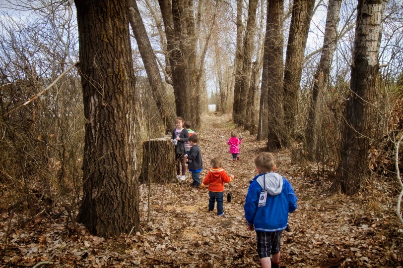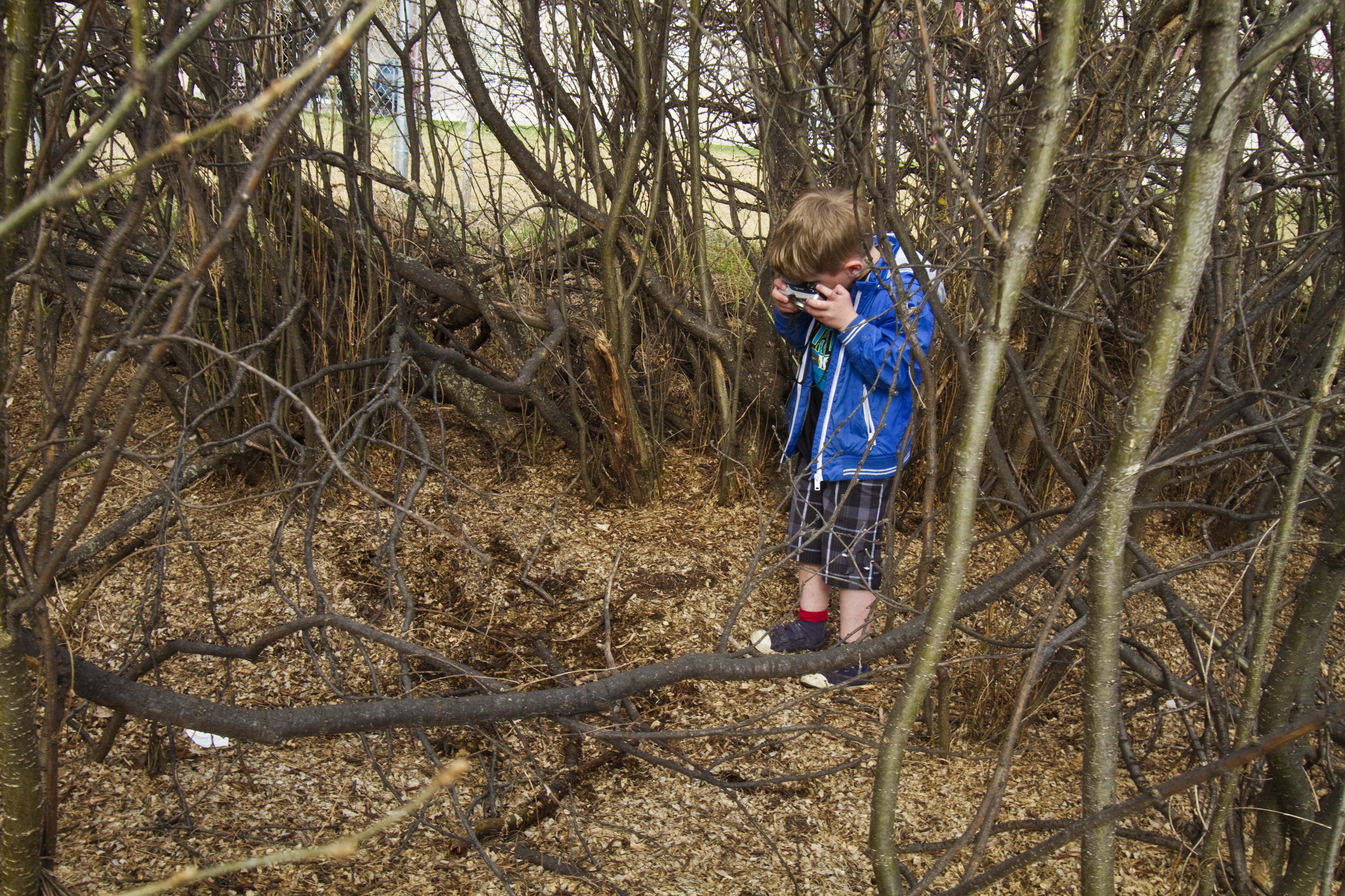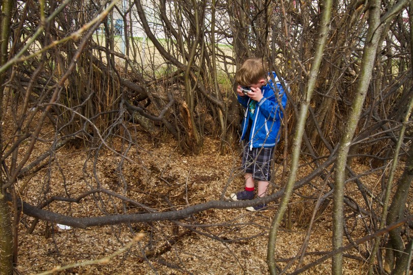 We went as far as a wooded path close to my home, and let the toddlers out of the wagon train, and off they went…pointing and clicking at everything they found interesting.
