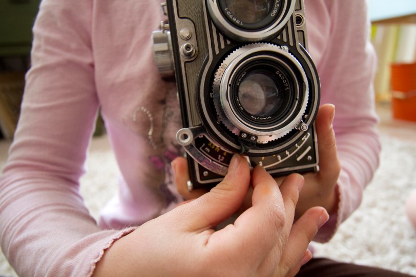 We talked about the viewfinder for each camera. Some had a digital screen. Some had a tiny square hole at the top. Some had both. The viewfinder on the TLR was voted “most fun”…