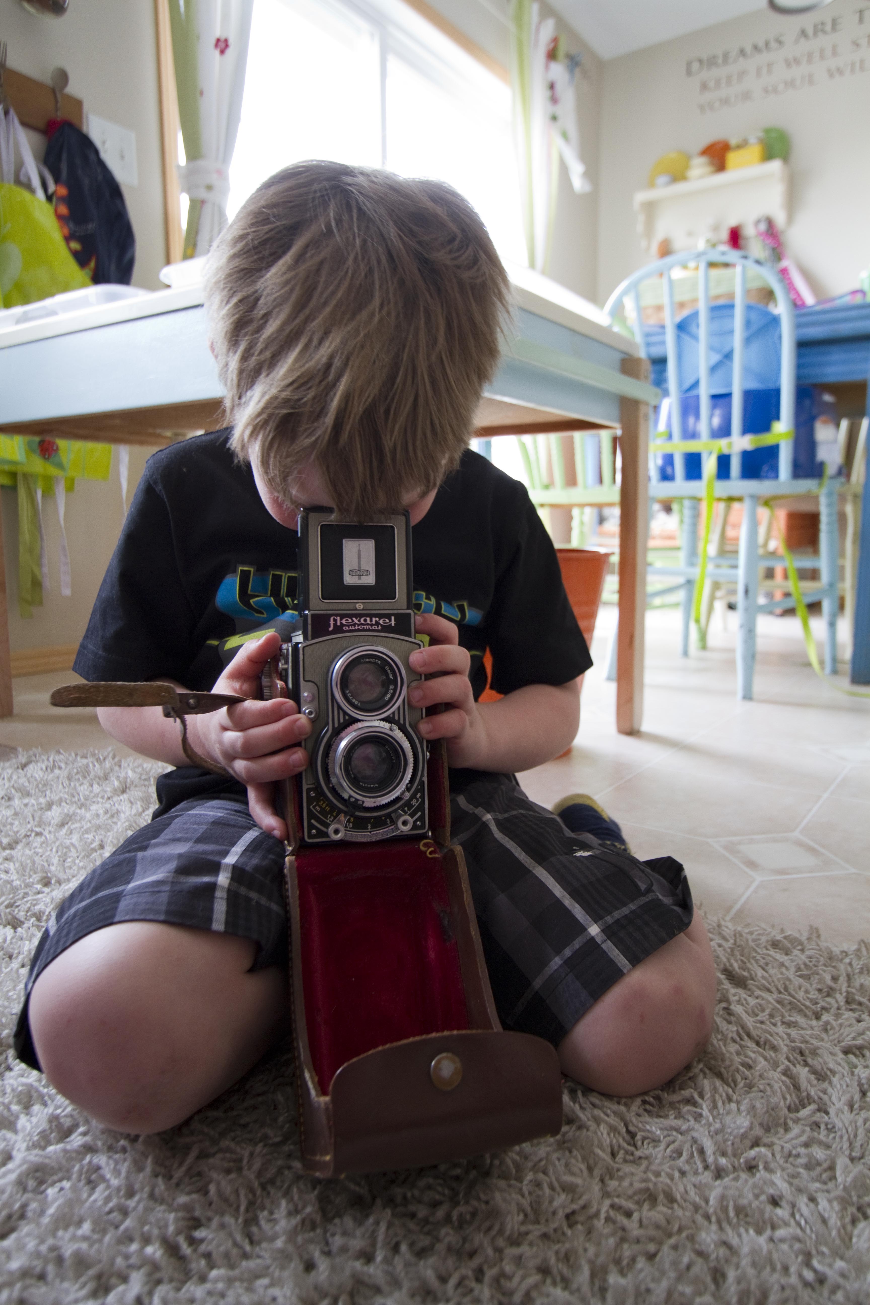 While peering into the box, they soon discovered that you had to move in the opposite direction of the actual object in order to frame the object in the viewfinder. This blew their minds! It was so fun to watch them try to adjust to a different “reality”…they caught on quicker than I did as an adult when I first got this camera!