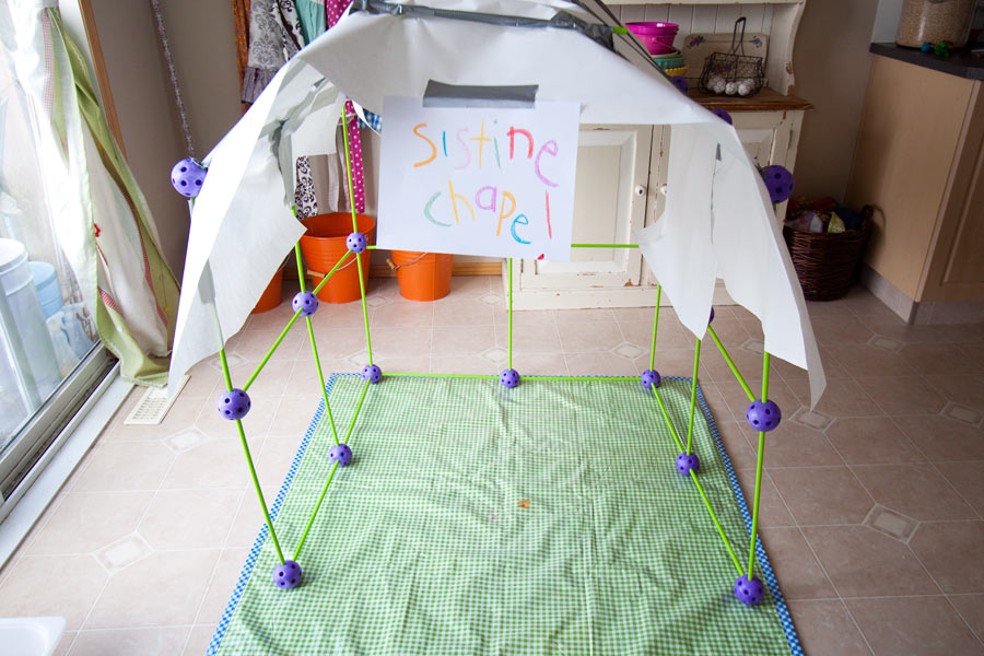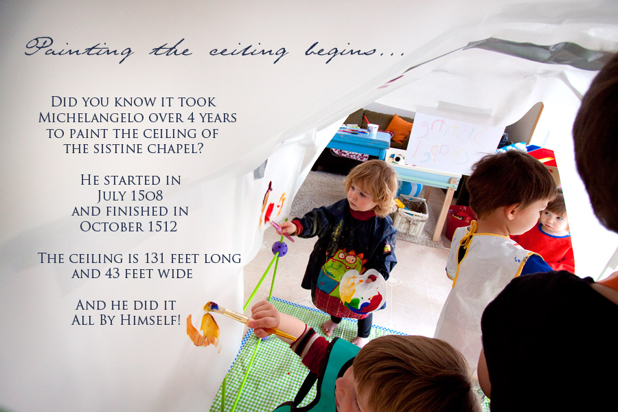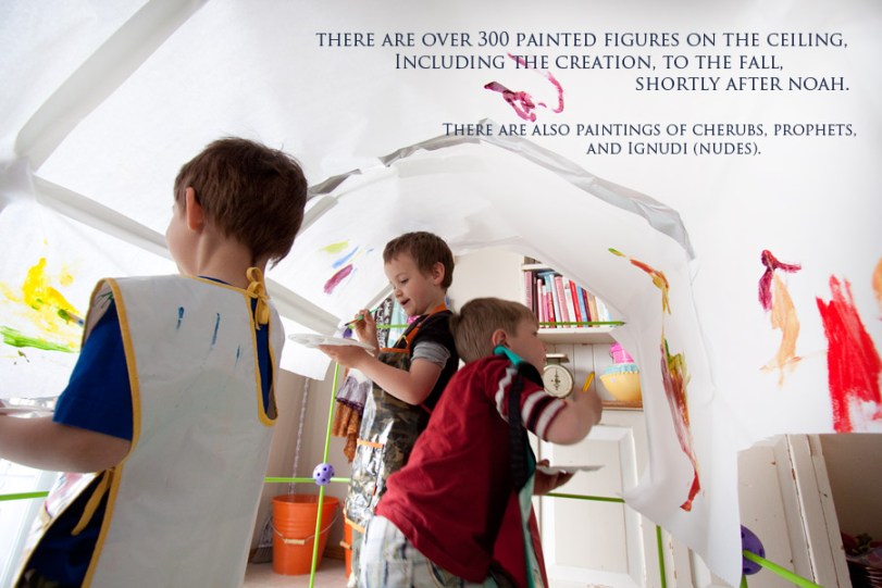 I have put together a few photos for you…all of them sharing the answers we found to all the smalls’ questions. All of them showing the progress of our own little Sistine Chapel.