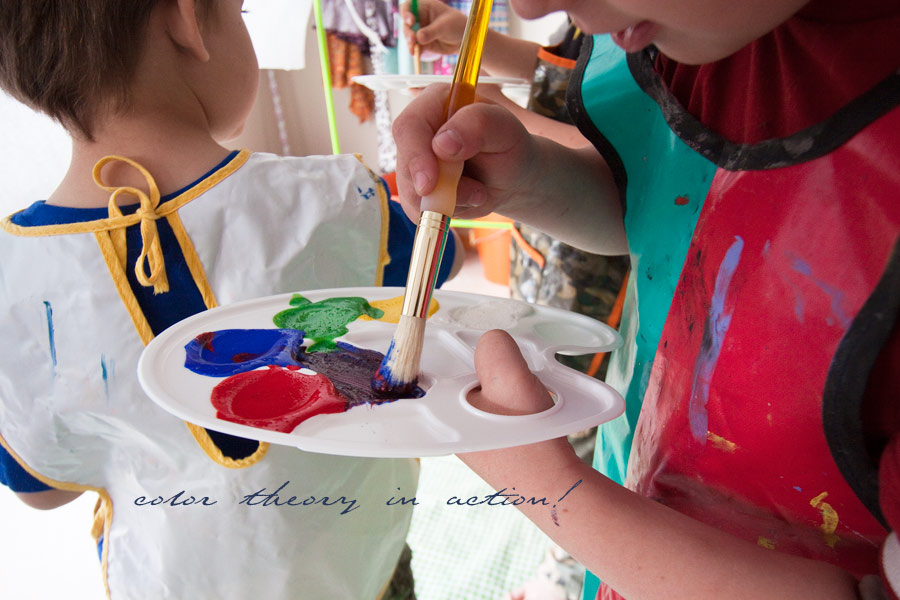 Oh, and that color theory we worked on yesterday? Oh, these wee ones went right to mixing and showing me what they had learned!