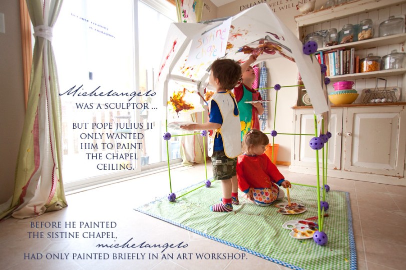 And so here we are…painting our own Sistine Chapel. And he was right. The smalls thought it was the best idea in the entire universe! One of them even exclaimed,