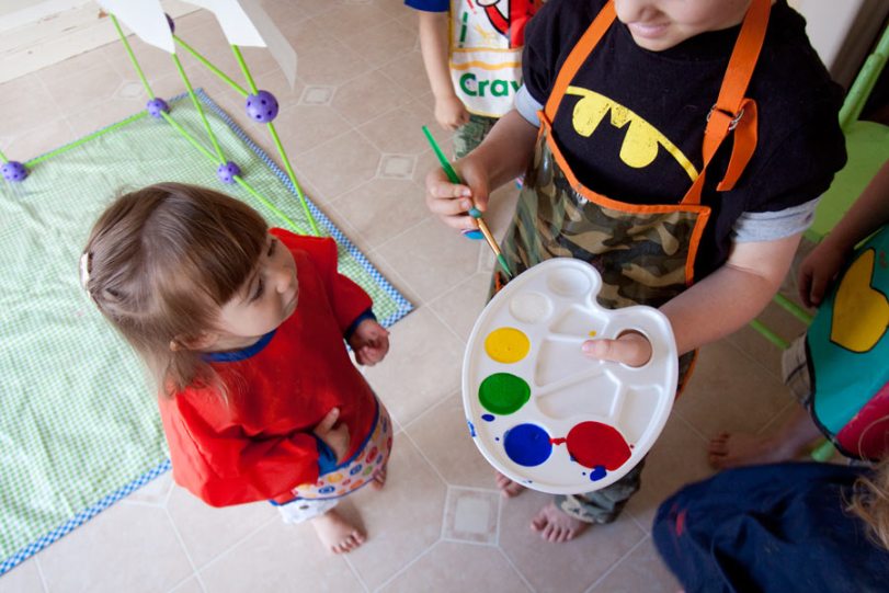 The smalls got suited up and ready with their palettes.