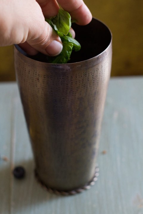 Put your basil into your martini shaker.