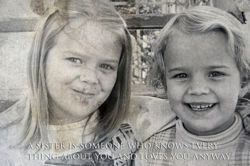My big sister and I haven’t always been good friends. Mum says we played together when we were little. I don’t remember a whole bunch from when I was a kid, which each of my family members will attest to. But I do remember watching her and our cousin put on the “Dixie and Denise” radio show when I was about 7. I remember playing “Little Women” in the back yard of her friend’s house when I was about 8 years old. And I remember singing ABBA songs into fake microphones with her when I was about 9 or 10.