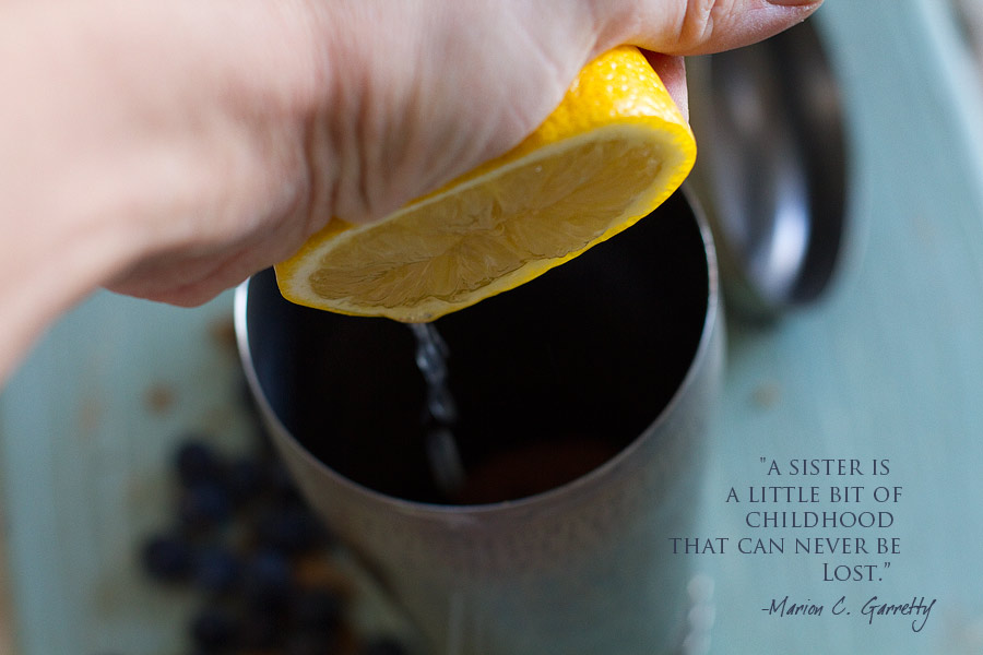 And sometimes, from far away, we share a drink and “cheers” each other across the miles. Most times, it’s a glass of wine, or a cosmopolitan. Today, it’s this. A blueberry basil mojito which my sister helped “invent” after her last trip to Mexico. I’m telling you right now, you will not want to lose this recipe. Here it is, exactly how I wrote it down over the phone when she called…