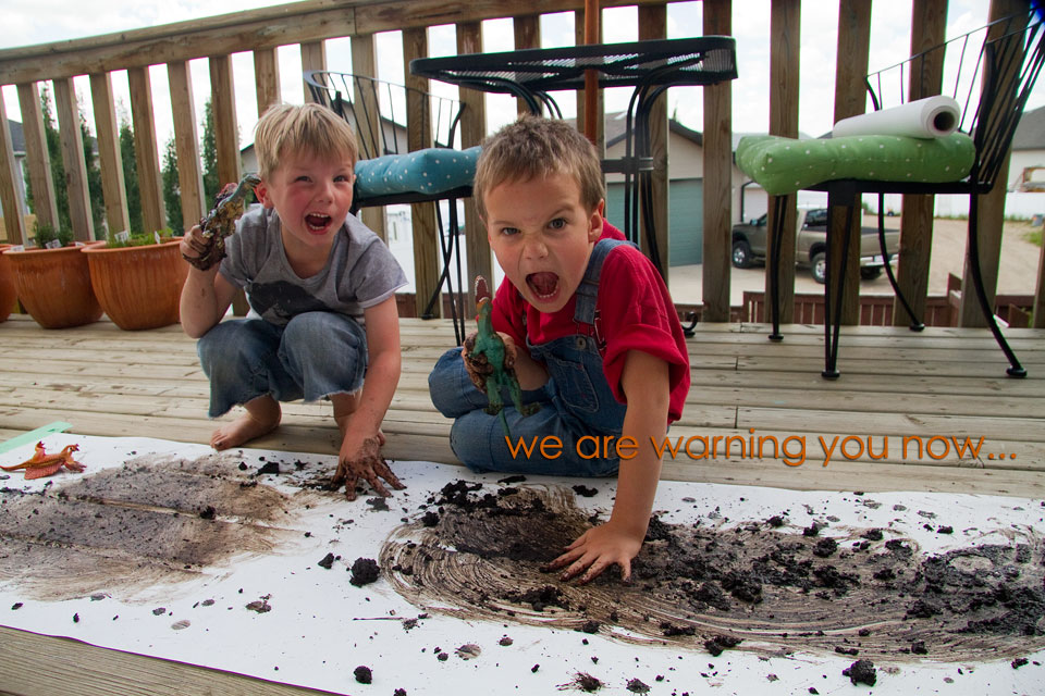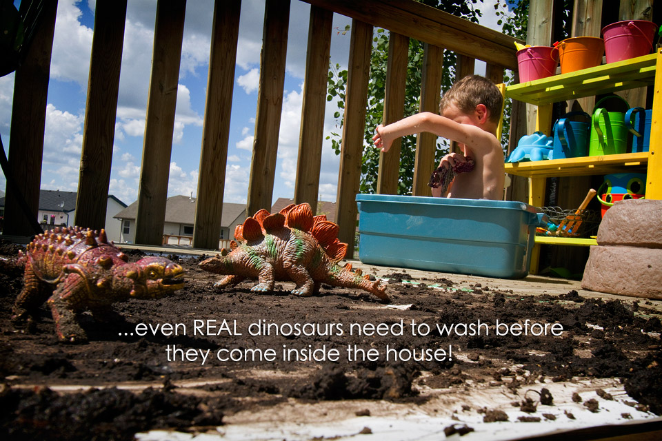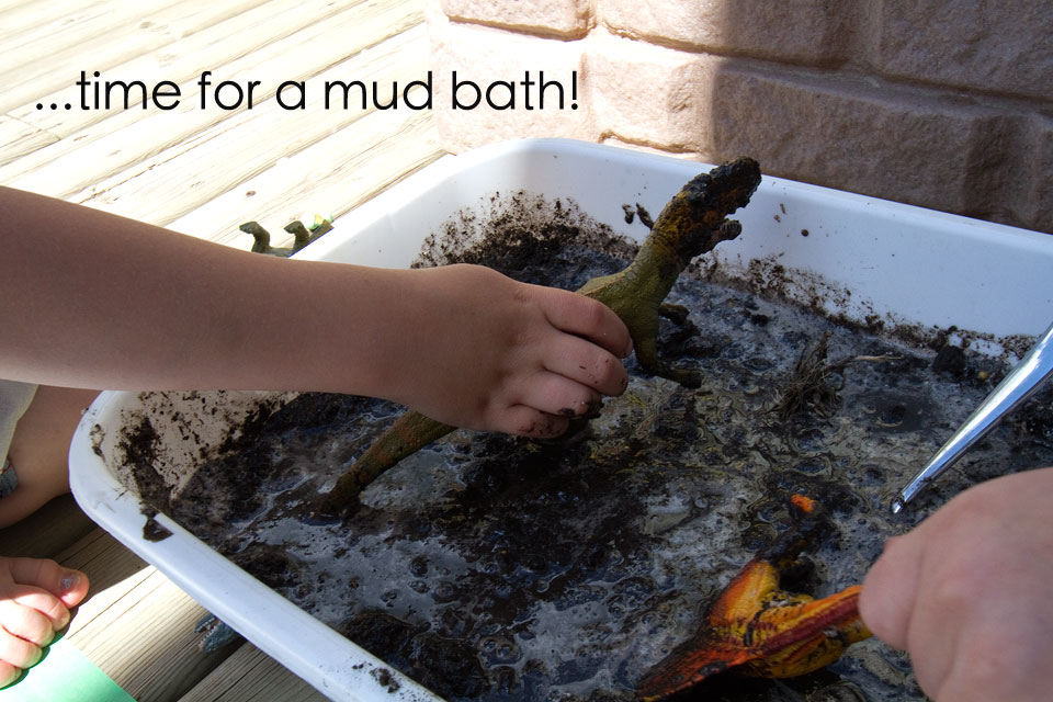The sun was out, the babies were sleeping and the boys were bored. In case you weren’t aware, these are the perfect conditions for dinosaurs. Oh, and mud.