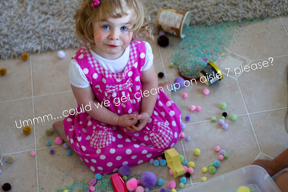 Oops. This is what happens when you lean on the bin. Good thing she’s so darn cute! Hehehehe!