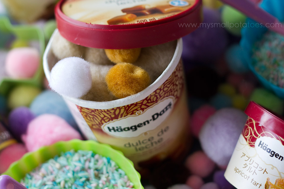 I have been saving ice cream tubs for a loooong time. I even brought the little ones home from Japan…my mum thought I was nuts! But the smalls needed ice cream tubs!! And so she washed HERS out for me too, and I packed them home in my suitcase.