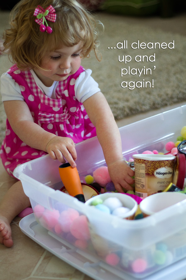 2. This bin is awesome, Arlee! I think we’ll be doing this in the fall when the Hooligans return. I’ve saved my coloured rice too. 🙂 And those little coloured cups look so familiar! lol