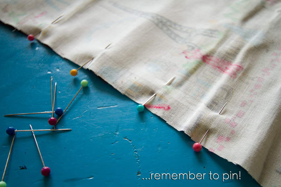 Mark your places with a fabric pencil or chalk and then start sewing! This part is not fun, I’ll tell you now. But it will be over soon, I promise!