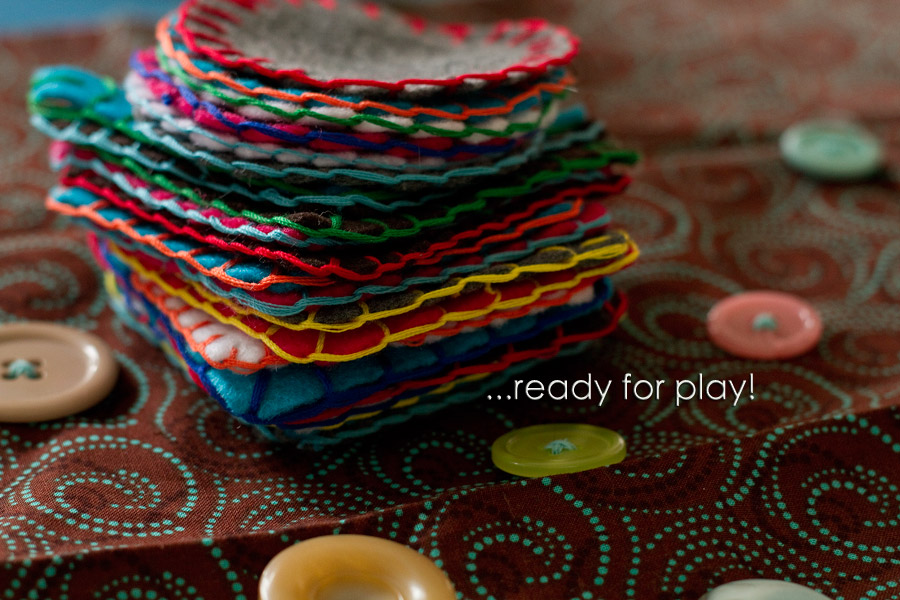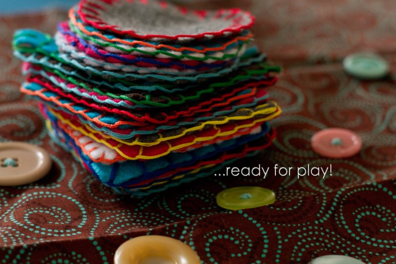 Future Girl doubles her felt pieces before she stitches. I did not, but it’s entirely up to you. Once you have all your shapes ready, cut a slit in the middle of each one, creating a “button-hole.”