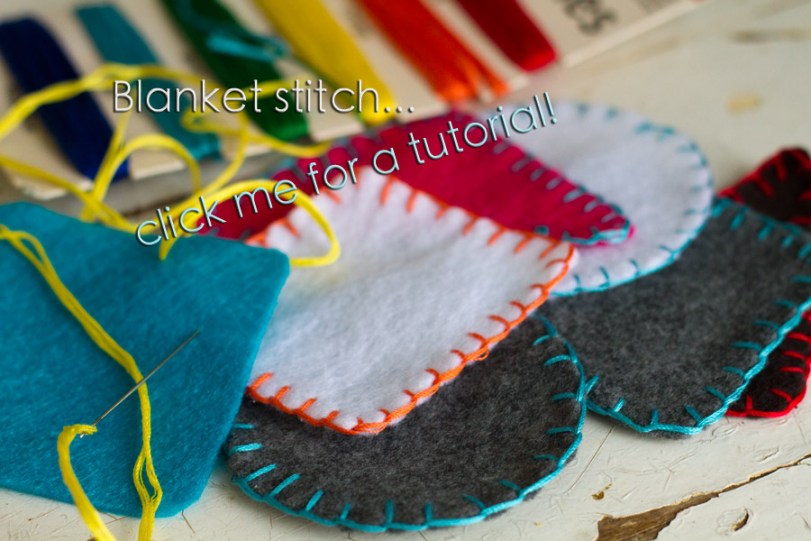 I chose to blanket stitch the edges of my shapes because I thought it would be pretty, and maybe help the felt keep it’s shape. But this is completely optional. If you do choose to blanket stitch and you don’t know how to do it, click the photo below for a tutorial…