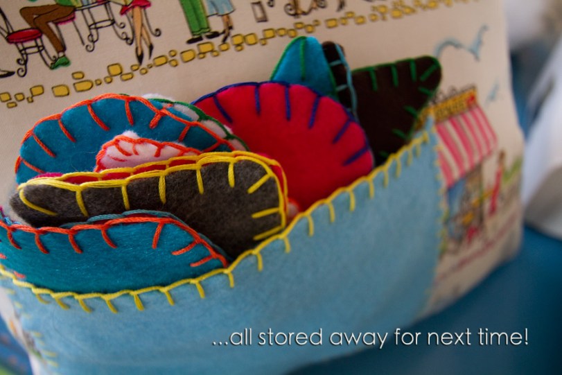 Now you’re almost ready!! I made a big pocket on the back of mine so that the pieces could be stored easily…