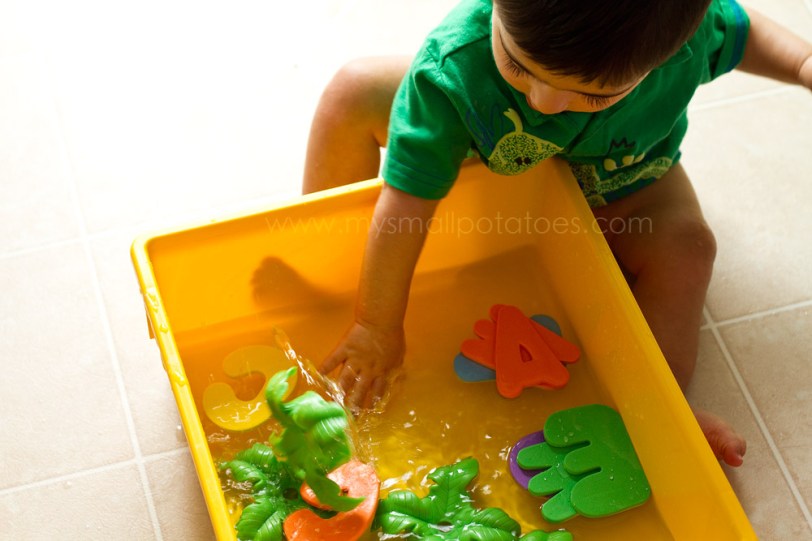 Foam letters, warm water, and coconut tree tops! Being little shouldn’t mean you get left out of the fun! There is usually a way to tailor the same “big kid” activity to the smallest of the smalls!
