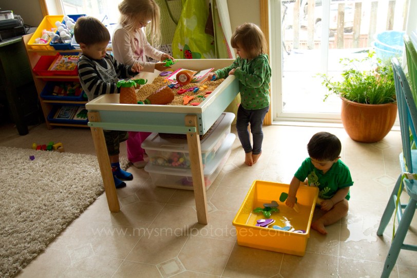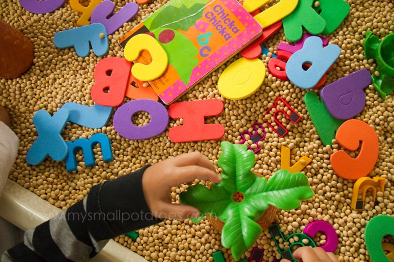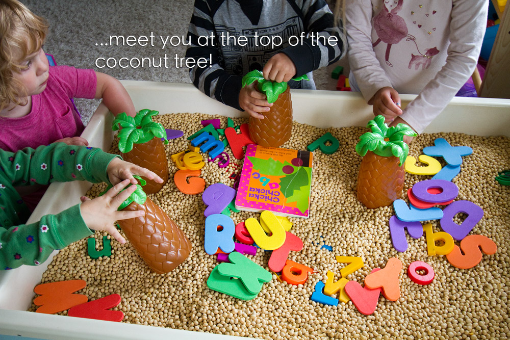 When we got back to the house, we built a Chicka Chicka ABC activity in our sensory table…