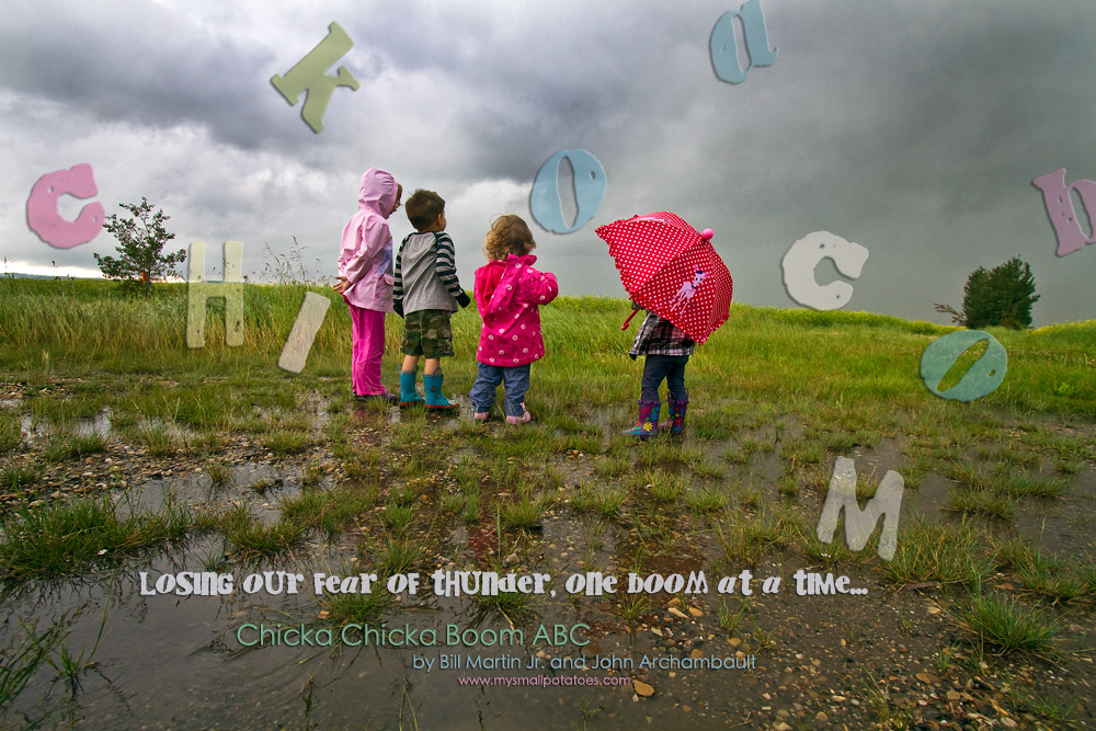 “CHICKA CHICKA BOOM BOOM!” from the sliding door of the minivan. We chanted and we waited. We waited for letters to fall from the clouds, just like they fell from the tree in the story book! Oh, she thought this was a funny game! And the next roll of thunder was not nearly as scary! Not even close. I even got a smile.