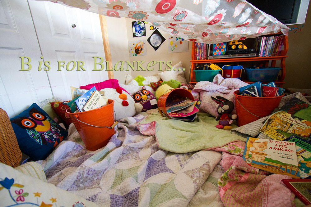 When the children first came to the comfy reading corner, we discussed all the things in the space that started with the letter B, like buckets, and blankets, and books!