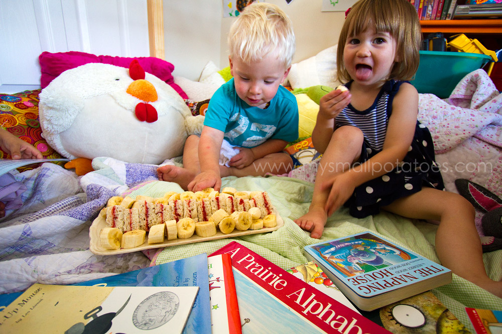 Once we got our tummies filled, we went back to the business of reading. It was a lovely, quiet activity for the smalls…right before nap time is the perfect time for this kind of party. And really, it was very simple to put together. Not all activities need to be messy, or brilliant, or original.