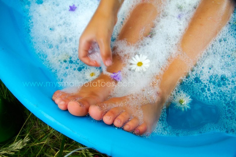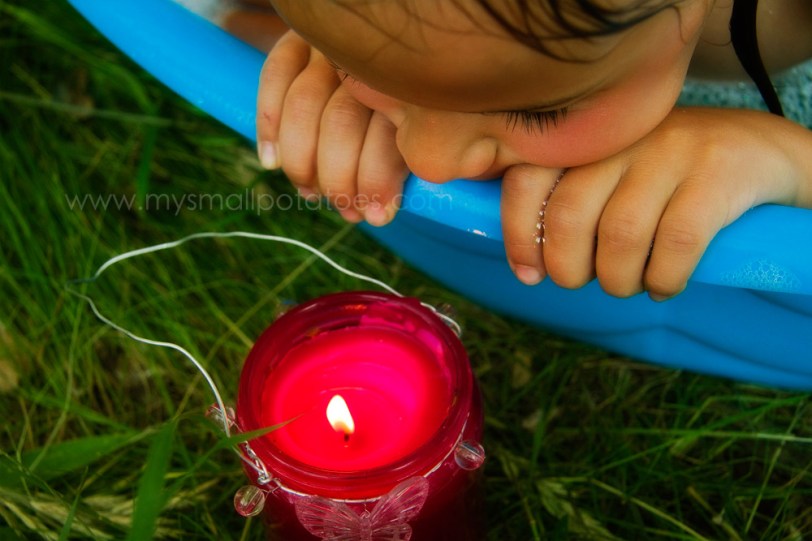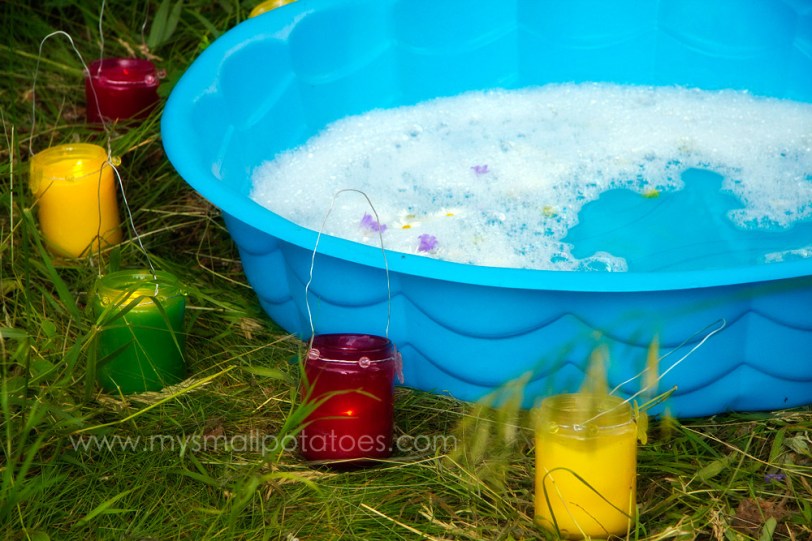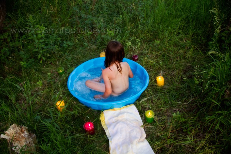 In the evenings, I would fill the little pool with warm bubbly water and my 2 smallest would bathe in the setting sun. One night, we decided to make it even a little more special…