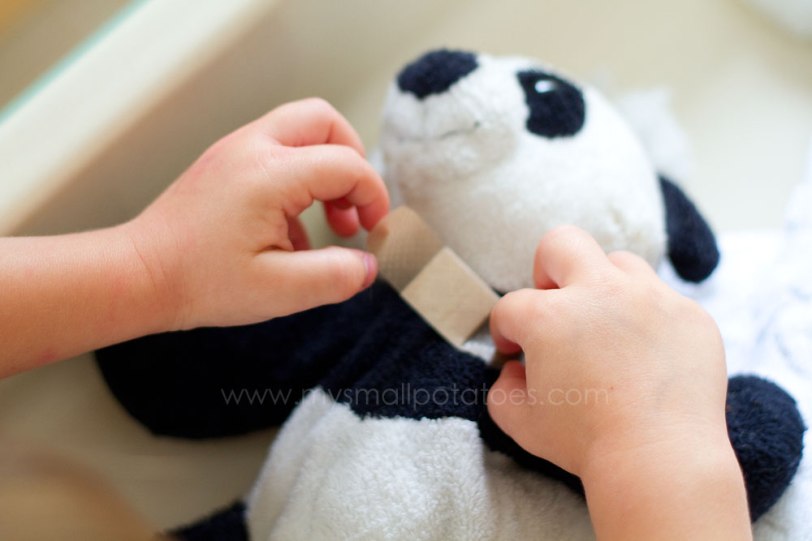 And poor little panda needed a band-aid! (Which is great small-motor skill practice, by the way!)