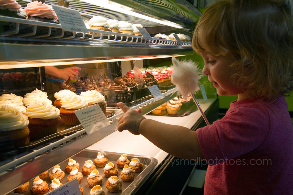 These two munchkins were having so much fun, I decided a trip to the cupcakery was in order. So we packed up and went for some of the “pinkest” cupcakes we could find, fairy wands, pink cheeks, and all!