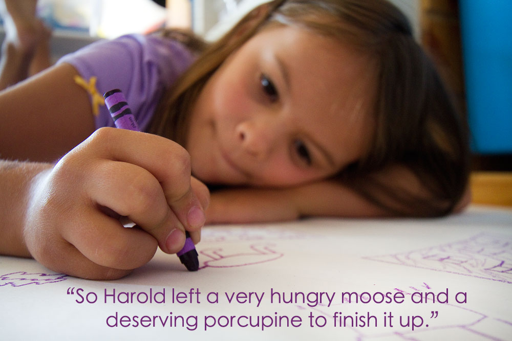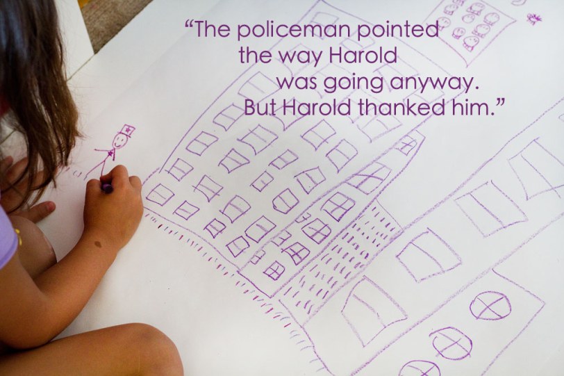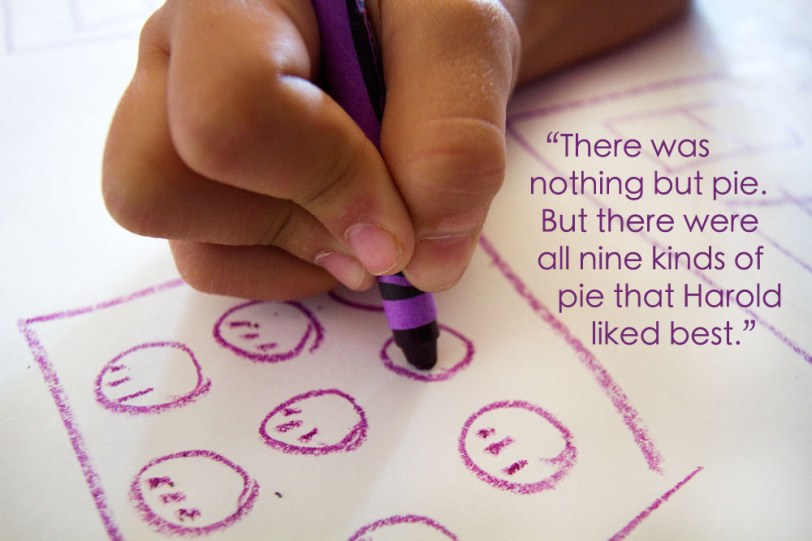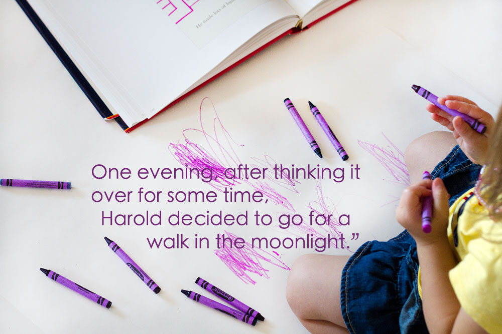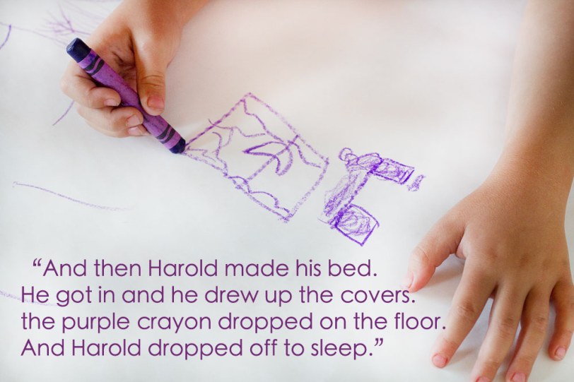 “He made a long straight path so he wouldn’t get lost. And he set off on his walk,taking his big purple crayon with him.” ~Crockett Johnson, Harold and the Purple Crayon