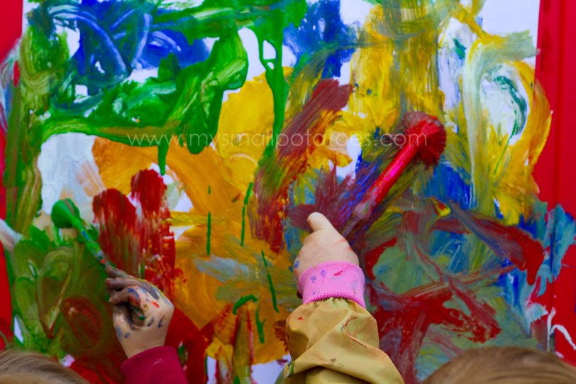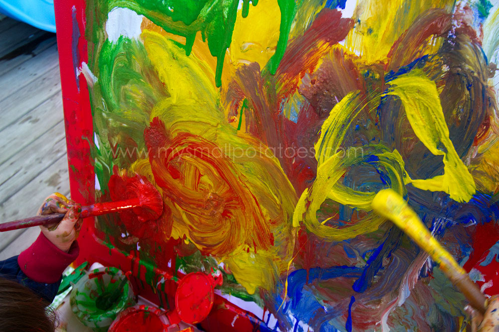 There are no rules when it comes to painting. There is no determined product. Just a process. The child can plan her own painting, from start to finish without any interference from adult rules or directions. The only thing she must remember, is to paint only on her paper. In my opinion, this is the best kind of art. The kind with no rules. The kind where children can create as they please.