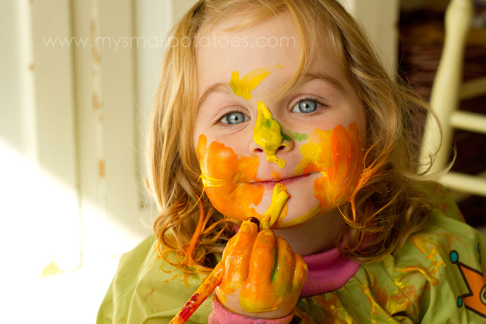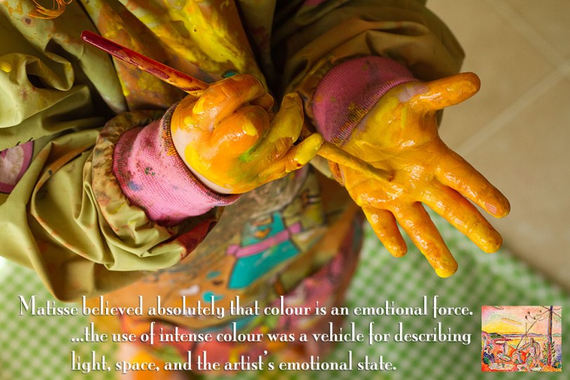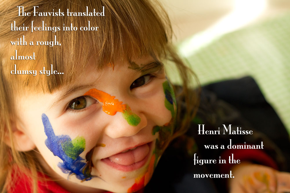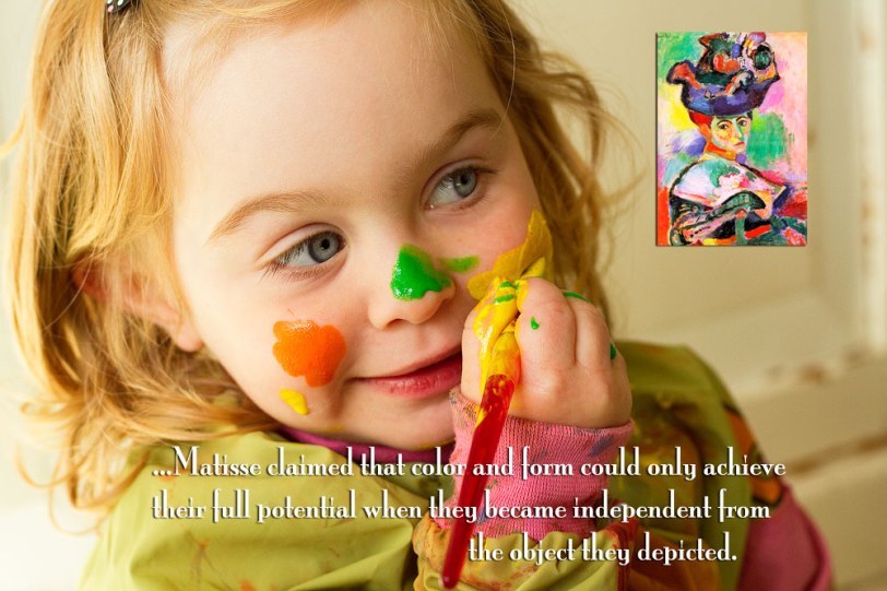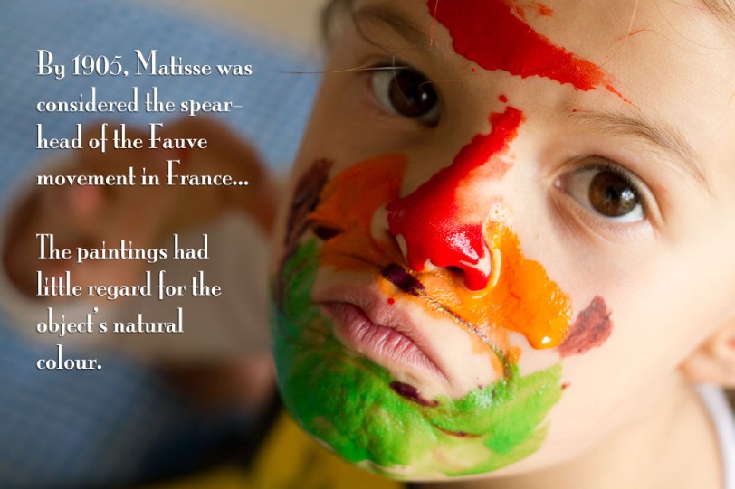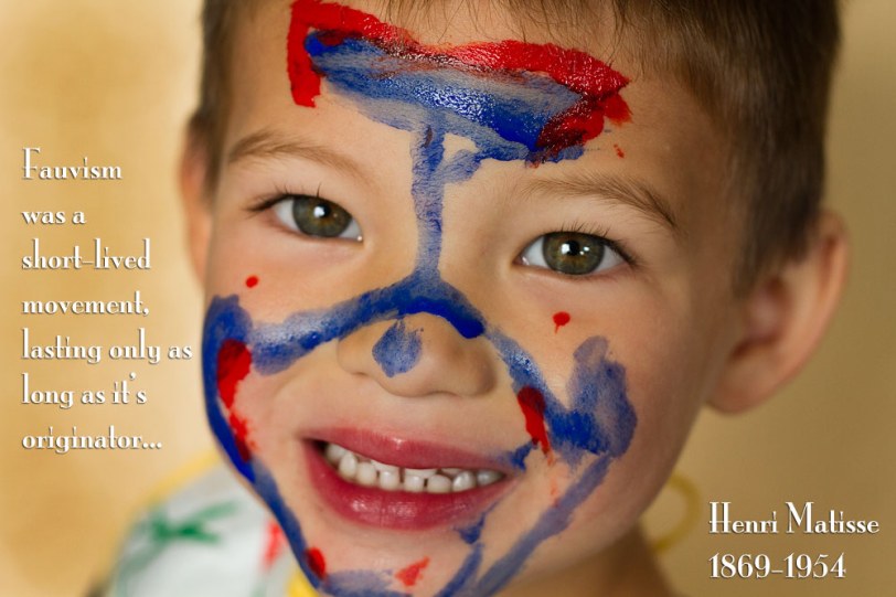 If the Fauvists painted with no regard to an objects natural colours, how better to illustrate this, than by painting ourselves? Our faces are not naturally green, orange, purple, blue, red, or yellow!!I made body paint out of baby shampoo and tempera powder, (*2 parts shampoo/1 part powder) and let the children use themselves and each other as their canvas.The activity was well-received, even if the onset of Fauvism in the art world was not! Some of the smalls took it very seriously. I washed a couple of faces twice so they could “do it again!” Some of the smalls used a mirror, some painted “blind”, and some painted each other…All of them learned something. Will the toddlers remember the name “Matisse” tomorrow? Maybe not. But they won’t forget how happy they felt when they were allowed to paint freely. They will remember the emotion. And this was the whole point of the Fauvist movement…to paint how you feel things look.