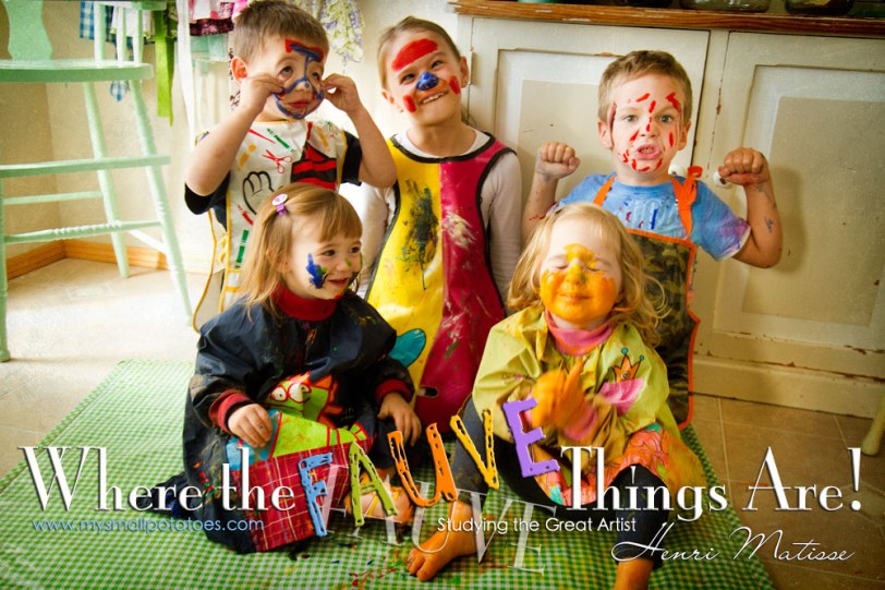 It’s here again! It’s here again! Kids Get Arty!! YAY! And we have gone a little wild here at Small Potatoes! We are celebrating the French modern artist Henri Matisse. There were soooo many possibilities with this artist, but I chose his “Fauve” period because this is what smalls do best! They are natural “Fauvists“!