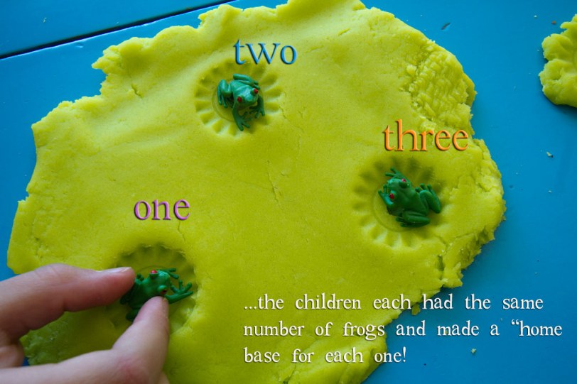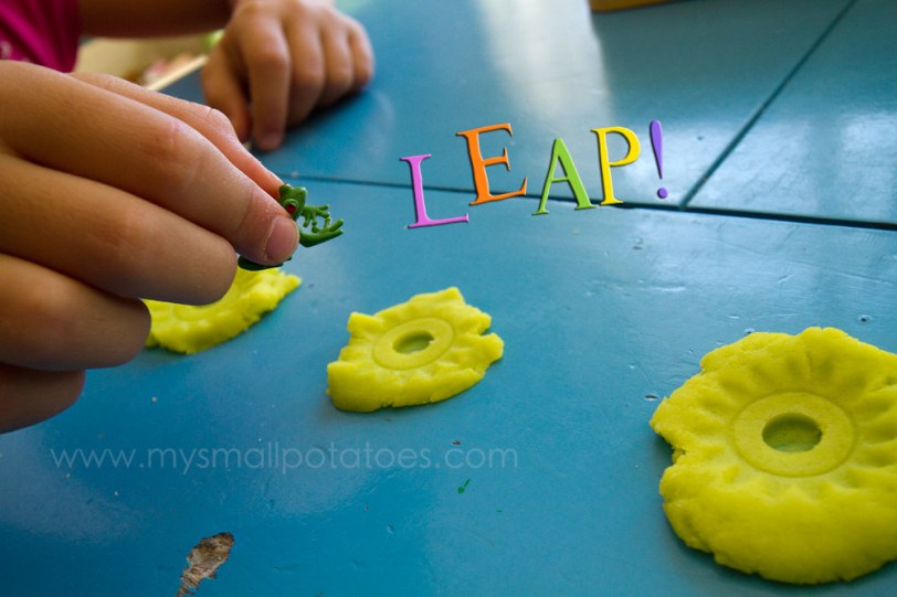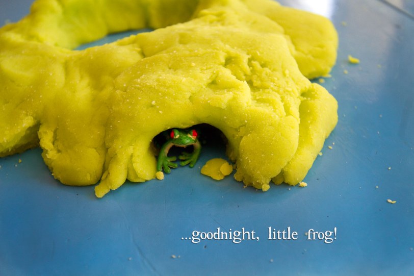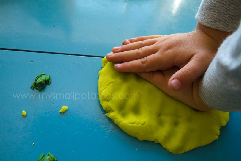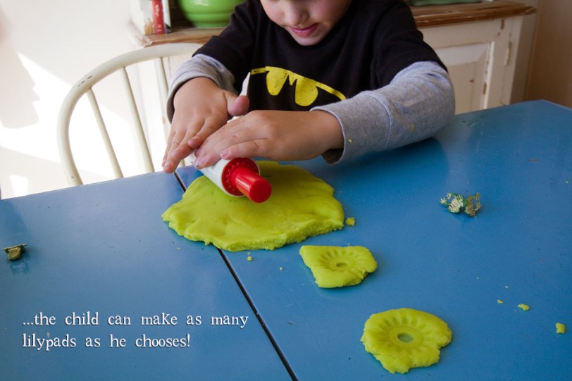 1. Hey, we were playing with playdough today too! It had been a quite a while since I’d made a batch! We had an ice-cream shop going on with ours. Love the green you whipped up for your lily pads!