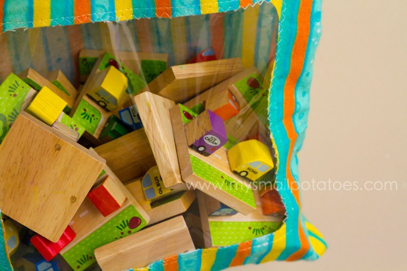 Mum had a solution…make a cloth bag with a window! I wanted the kids to be able to see the activities without having to open each and every bag until they found the one they wanted, and I didn’t think this was too much to ask! After I complained and grumbled and finally got around to making these bags, I now have to admit that I LOVE THEM! Hehehehehe! Not only are they safer and better for the environment, they are much prettier than plastic bags!