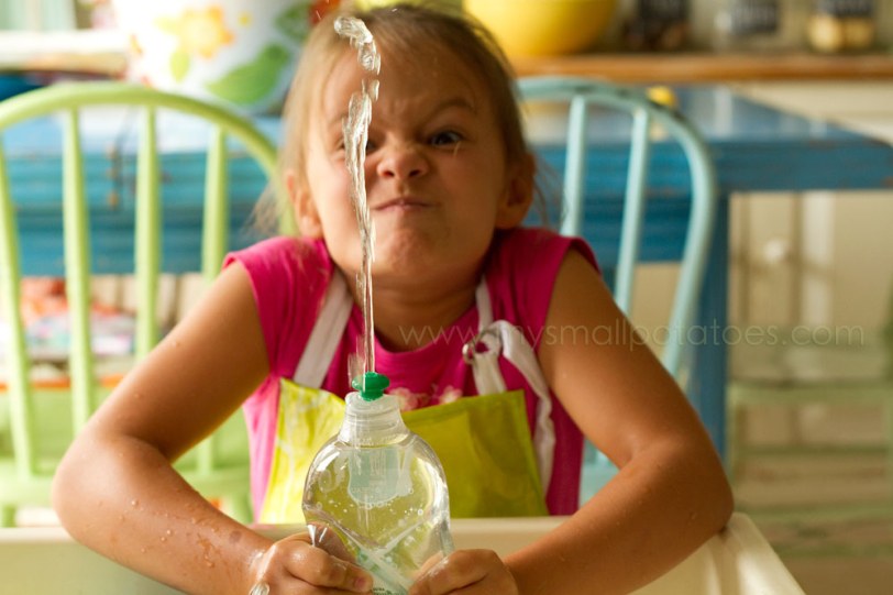 I did not need my whole kitchen in that shot. I didn’t even need her face to be crisp. The bottle of water was the focus of the photo, so it is crisp. Her face is clear enough that we can still see her goofy expression. The rest of the room is unimportant. Now you want to know how I did it, right?