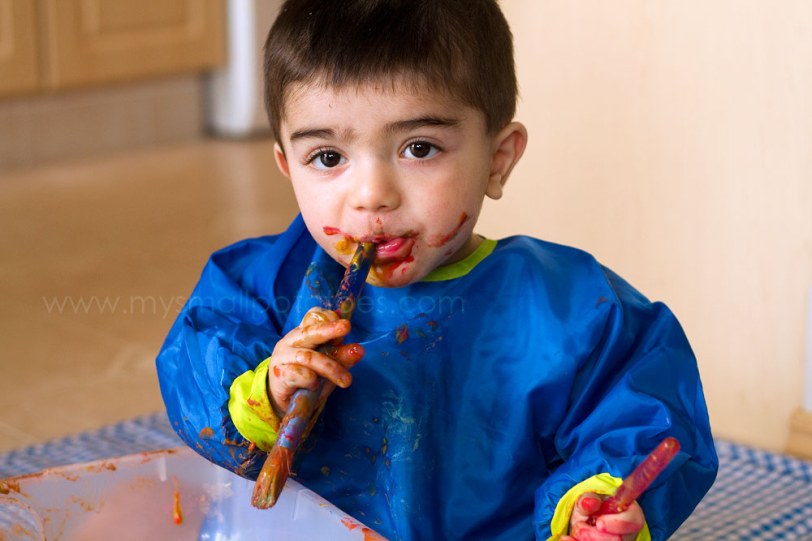 Every once in a while, baby J would abandon the paintbrushes and use his wee hands to explore…